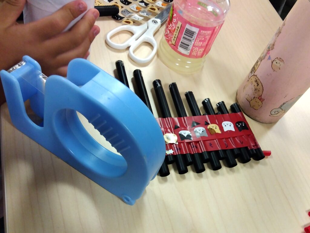 テープでくっつけたりしながら、オリジナルの楽器づくりに挑戦しました!