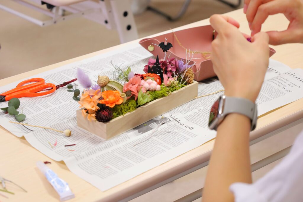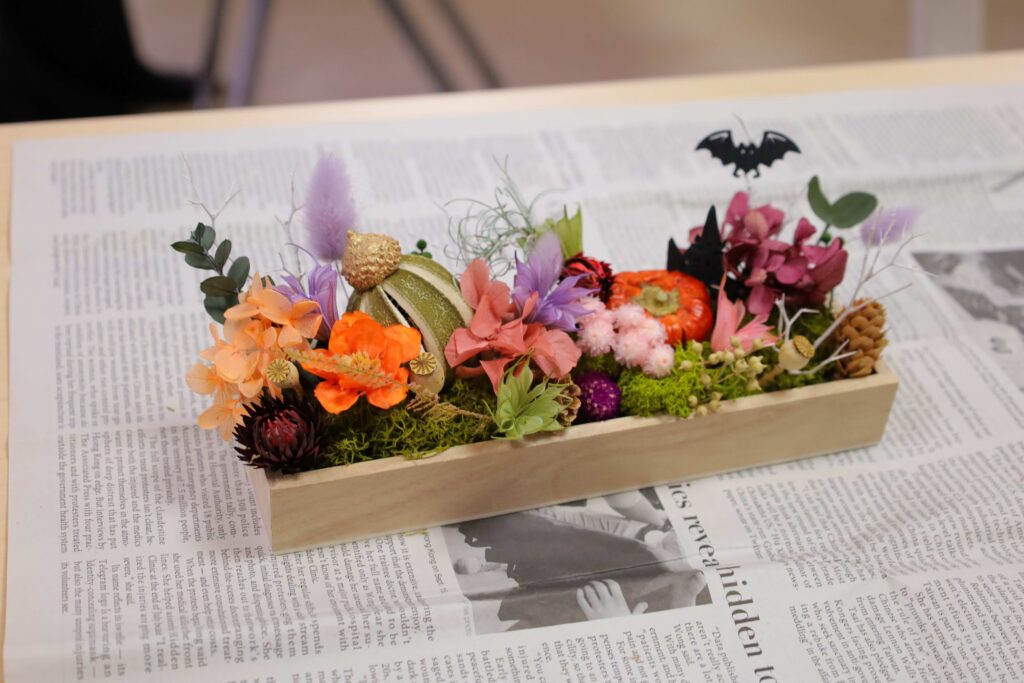今回は、ボックスにお花とハロウィンの装飾を飾る『ハロウィン箱』を作りました🎃