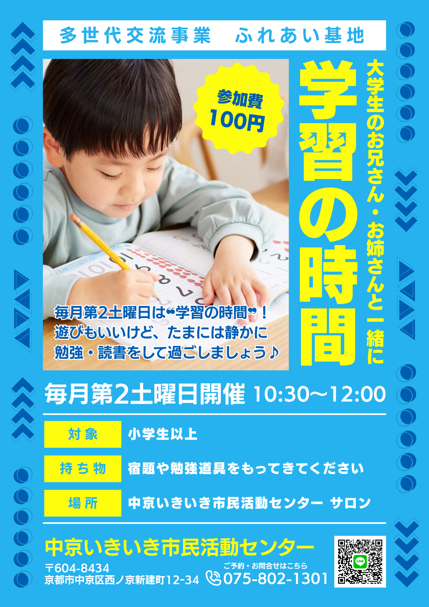 毎週土曜日の午前に開催しているふれあい基地。 小学生・中学生が遊んだり、大学生と交流したり、のびのびと過ごしています。 第2週目は❝学習の時間❞! 遊びもいいけど、たまには静かに勉強・読書をして過ごしましょう♪ 勉強でき […]